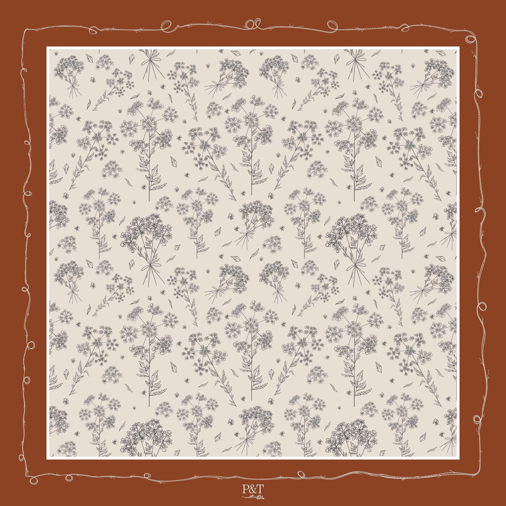 Burnt Orange Cow Parsley Scarf (Large) - 100% Silk