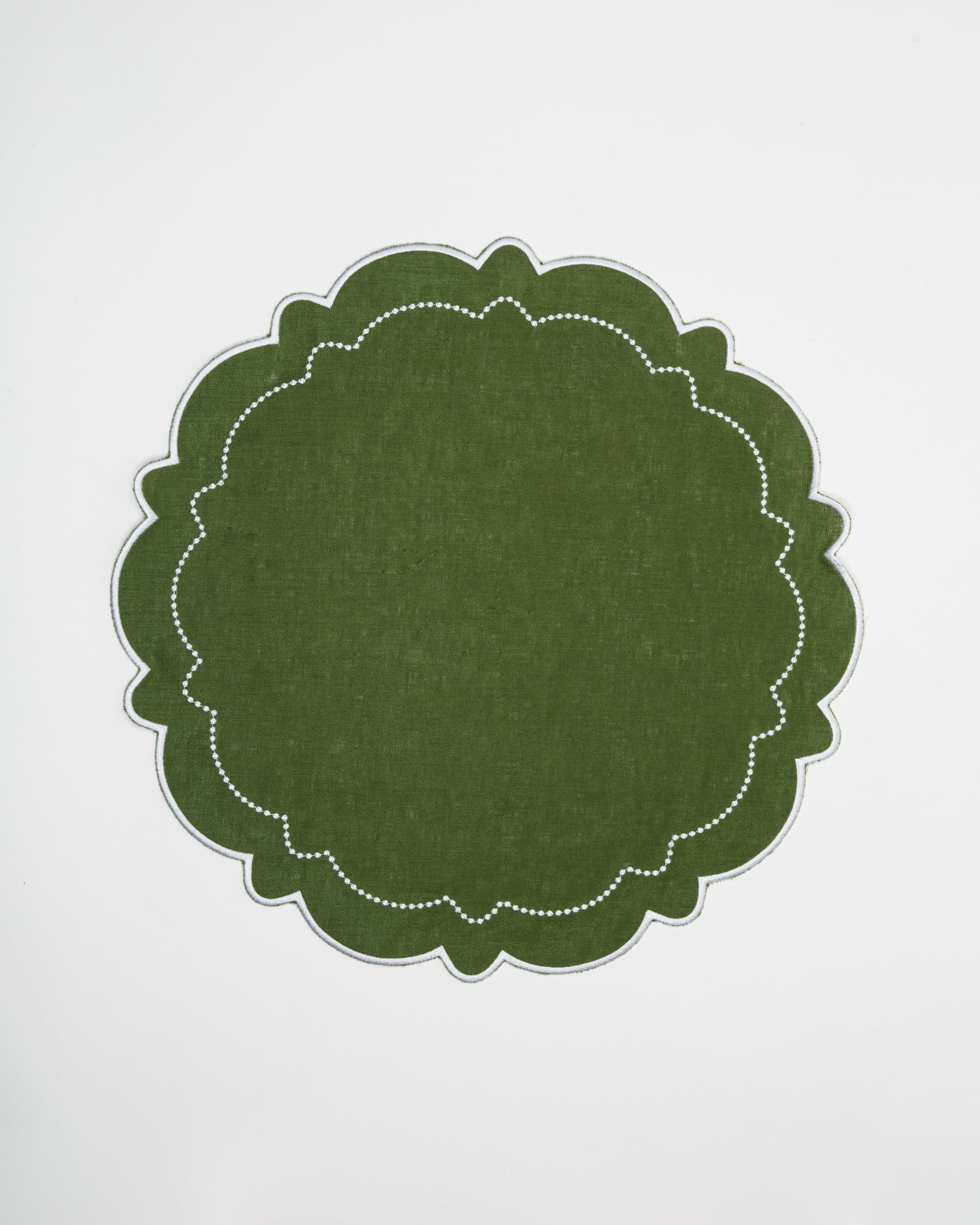 Dark Green Round Scalloped Linen Placemats - Set of 2