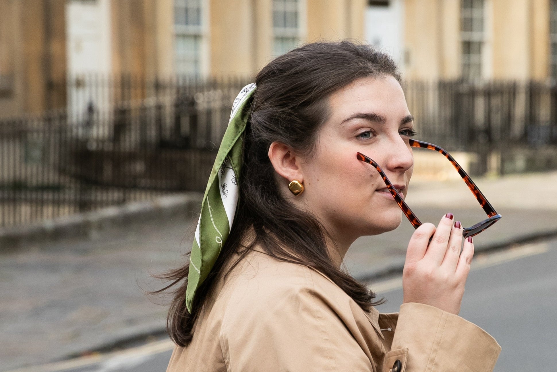 Designed in England; our signature Small Cow Parsley Scarf is the perfect accessory for both town and country. Wear as a headscarf, around your neck, waist or bag.