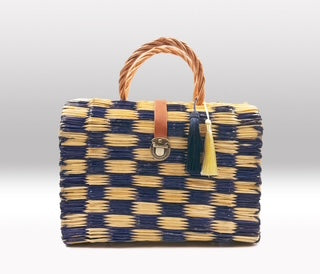 The Porto Becky Basket features a STUNNING chequered design that beautifully contrasts deep navy blue with natural reed squares. It’s compact size makes it the prefect day bag adding a stylish addition to any outfit